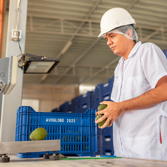 Aplicamos un análisis riguroso en el campo antes de la cosecha. Verificamos la madurez, apariencia y condiciones fitosanitarias para asegurar que la fruta cumple con nuestros estándares.